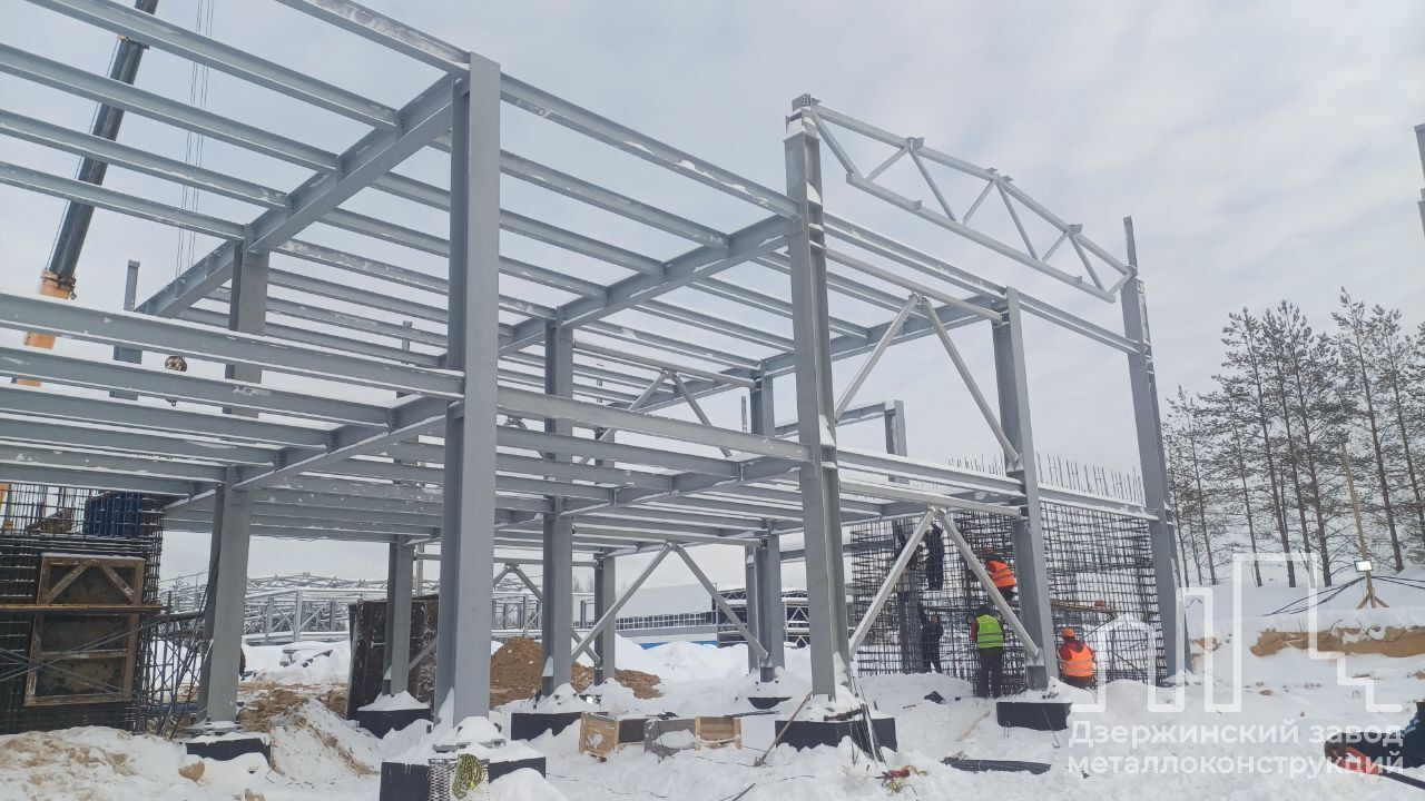 ДЗМКИ изготовил и приступил к монтажу металлоконструкций промышленно-производственного здания для ОЭЗ «Кулибин» в Дзержинске, на участке к востоку от завода АО «ДПО «Пластик». Объем поставки составляет 480 тонн, работы ведутся с августа 2025 года.